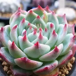 大和锦是景天科拟石莲花属的多肉植物。肉质叶排成紧密的莲座状,广卵形至散三角卵形,背面突起呈龙骨状,…