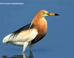 棕夜鹭是一种中型涉禽,身长56-66 cm。这是一个矮胖的鹭。黑色头冠,腿爪是明亮的黄肉桂色。…
