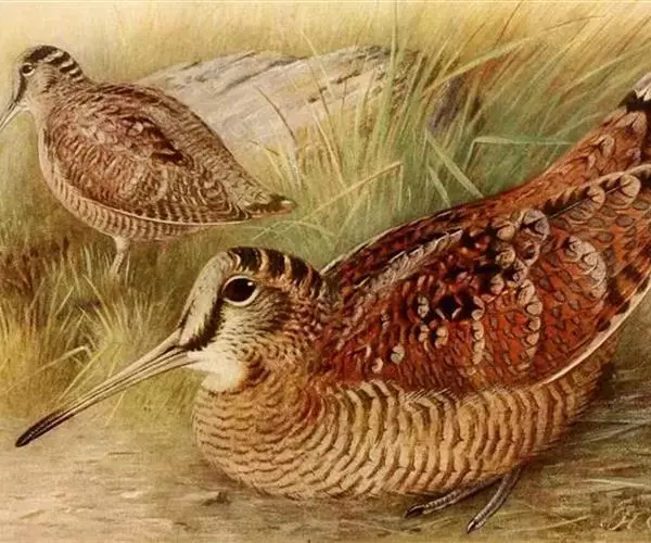 丘鹬(学名:Scolopax rusticola)体长35厘米,是一种涉禽。体型肥胖,腿短,嘴长且直。与沙锥相比体型较大,头顶及颈背具斑纹。起飞时振翅嗖嗖作响。占域飞行缓慢,于树顶高度起飞时嘴朝下。飞行看似笨重,翅较宽。栖息于阴暗潮湿、林下植物发达、落叶层较厚的阔叶林和混交林中,有时也见于林间沼泽、湿草地和林缘灌丛地带。夜行性的森林鸟。白天隐蔽,伏于地面,夜晚飞至开阔地进食。主要以鞘翅目、双翅目、鳞翅目昆虫、昆虫幼虫、蚯蚓、蜗牛等小型无脊椎动物为食,有时也食植物根、浆果和种子。繁殖于欧亚大陆和日本。越冬于北非、印度、中南半岛、日本;偶尔到菲律宾。