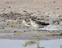 泽鹬:小型涉禽,体长19-26厘米。嘴长,相当纤细,直而尖。颜色为黑色,基部绿灰色,脚细长,…