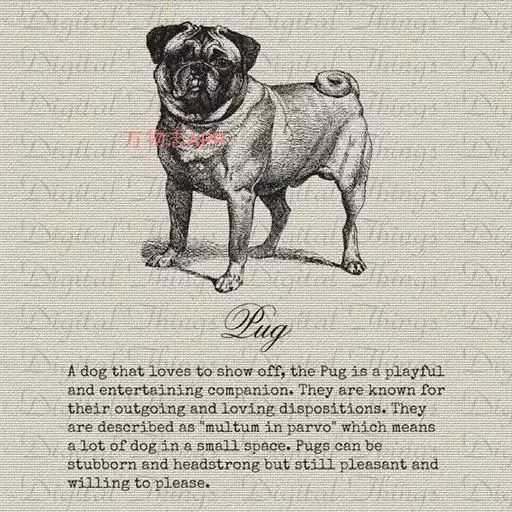 巴哥犬(pug),原产于中国,富有魅力而且高雅,14世纪末正式命名为“巴哥”其词意古语为“锤头”、“小丑”,狮子鼻或小猴子的意思。巴哥犬容易有睫毛倒插的毛病,头部皱折多,也容易泪管阻塞,而有两条明显的泪痕。巴哥犬是体贴,可爱的小型犬种,不需要运动或经常整理背毛,但需要同伴。容貌皱纹较多,走起路来象拳击手是其特征。它是以咕噜的呼吸声及像马一样抽鼻子的声音作为沟通的方式。同时,此犬具备优良及爱干净的个性,这些特色便成为广受喜爱的原因。