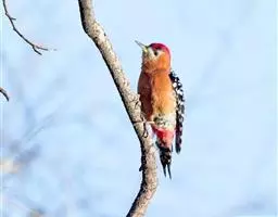 棕腹啄木鸟为啄木鸟科,啄木鸟属是中等体型的鸟类,体长约20厘米。头顶部具红色斑带。脚强健,有趾4个,…
