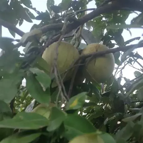 沙田柚,芸香科柑橘属乔木。树干较高,枝叶繁茂,嫩枝扁且有棱,叶质颇厚且为浓绿色,…