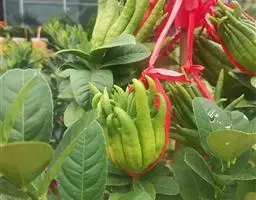 常绿灌木或小乔木。叶椭圆形,两端尖。果扁圆形,朱红色;味甜,可食。产自中国东南部,广东地区大量盆栽。