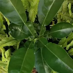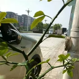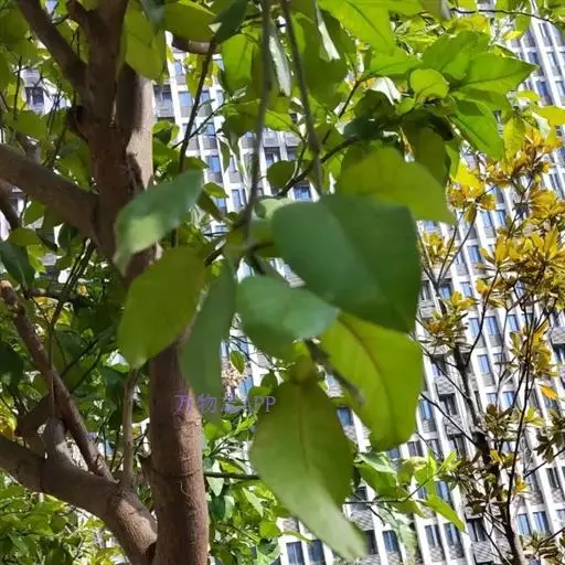 柚 乔木。嫩枝、叶背、花梗、花萼及子房均被柔毛,嫩叶通常暗紫红色,嫩枝扁且有棱。叶质颇厚,色浓绿,阔卵形或椭圆形,连冀叶长9-16厘米,宽4-8厘米,或更大,顶端钝或圆,有时短尖,基部圆,翼叶长2-4厘米,宽0.5-3厘米,个别品种的翼叶甚狭窄。