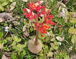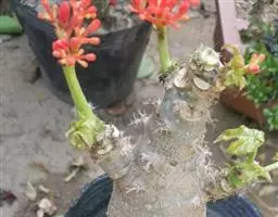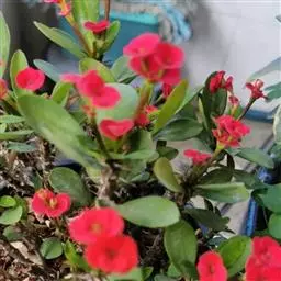 虎刺梅:别称铁海棠,是蔓生灌木植物。茎多分枝,长60-100厘米,直径5-10毫米,具纵棱,密生硬…
