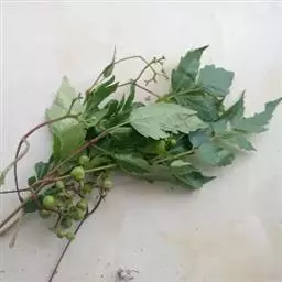 木质藤本,小枝圆柱形,有纵棱纹,疏生短柔毛,以后脱落。卷须2-3叉分枝,相隔2节间断与叶对生。叶为3小叶,中央小叶披针形或椭圆披针形,长5-13厘米,宽2-4厘米,顶端渐尖,基部近圆形,侧生小叶卵椭圆形或卵披针形,长4.5-11.5厘米,宽2-4厘米,基部不对称,近截形,边缘有粗锯齿,齿端通常尖细,上面绿色,嫩时被稀疏柔毛,以后脱落几无毛,下面浅绿色,侧脉5-7对,网脉两面均不明显;叶柄长3-10厘米,中央小叶有柄或无柄,侧生小叶无柄,被稀疏柔毛。
