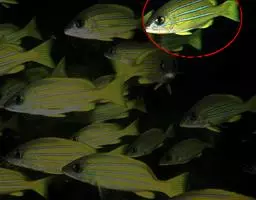 射水鱼的眼睛偏向前方,双目并用可以帮助它们准确地判断猎物的位置。此外,它们的眼睛还可以转动,紧紧盯住猎物。射水鱼的背部平坦,这就意味着它们能够尽可能的贴近水面。依靠特殊的鳍,它们还能够在水中盘旋。不过在水里捕捉空中猎物有一个大问题——折射,要想命中目标,射水鱼必须克服这个问题。从水下往上看,一切事物的位置都发生了偏移,射水鱼从一侧看到的苍蝇位置与实际位置之间是有差别的。但是有一个地方不会受到影响——苍蝇正下方。此时,“狙击手”就会锁定目标发射弹药。