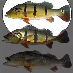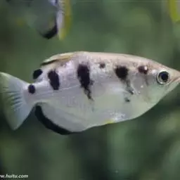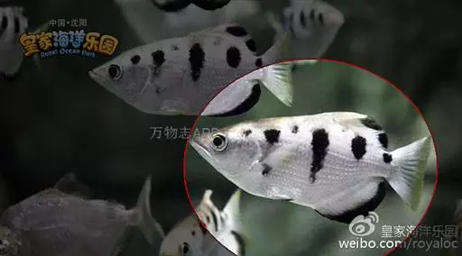 学名Toxotes chatareus:分布于斯里兰卡,印度,新几内亚和澳大利亚北部。喜欢比较高的盐分。条纹之间靠近背部的地方有明显的黑斑,很容易和普通射水鱼区分。