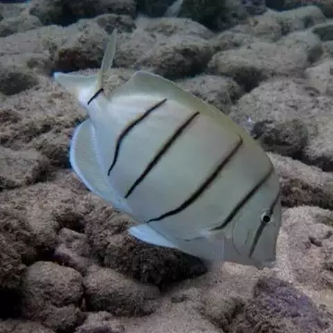 横带刺尾鱼,刺尾鱼科刺尾鱼属的一种鱼类。俗名条纹刺尾鱼。鱼吻及下颌周围有淡色环。体被细小栉鳞。体色…
