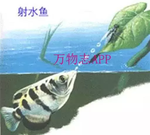射水鱼在水面游动时,不仅能看到水面的东西,也能察觉空中的物体。一旦有捕食对象,便偷偷游近目标,先行瞄准,然后从口中喷出一股水柱,将昆虫打落水中。它能把水射到3米多高,距离30厘米内的飞蛾很难逃命。它不仅能把苍蝇、蜜蜂、蝴蝶之类的小昆虫击落。