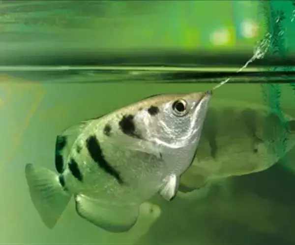 即便射水鱼可以解决物理上的问题,它们的猎物仍有可能死里逃生,这时候射水鱼的另一项特殊本领就要派上用场了。这位生活在水下的居民并不介意暂时离开水面,它们可以跃出水面近30厘米抓住猎物。