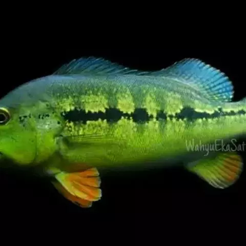 身体侧扁,嘴比较大,可以伸缩。下颌突出,眼睛也非常大,在头的前半部,它们身体颜色搭配非常美丽,身体呈橄榄绿色,有几条粗的石青色条纹横在背部,尾部淡黄色,是一种欣赏价值很高的鱼类。