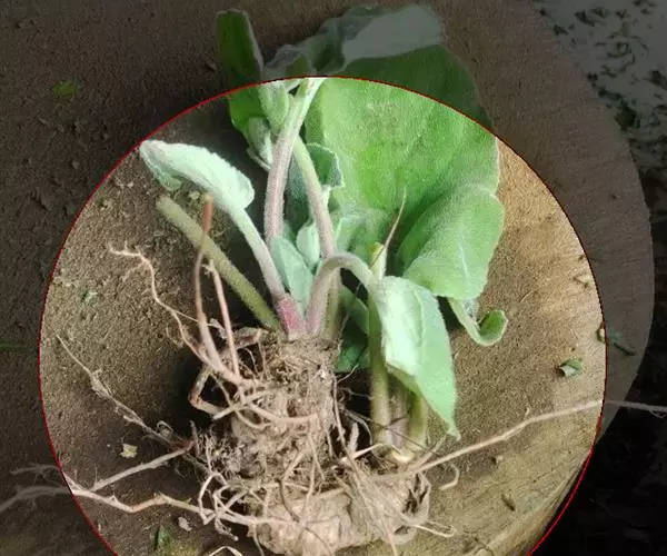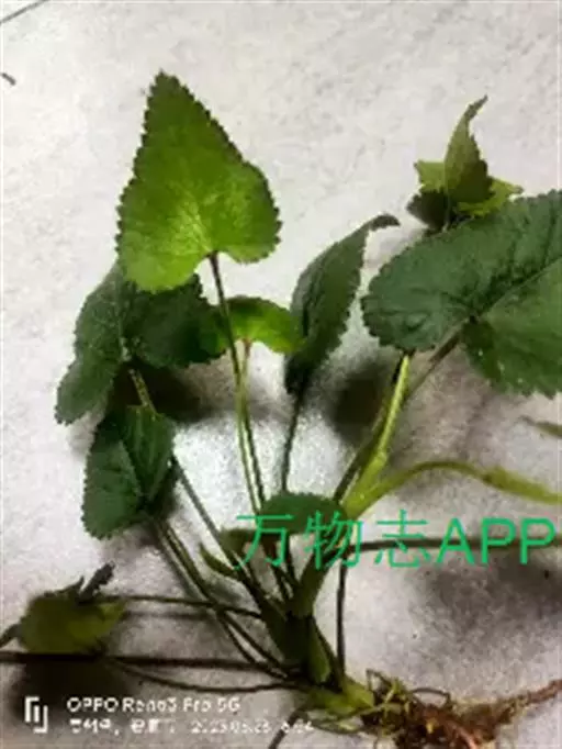 叶均基生,呈莲座状;叶片宽卵形或近圆形,长1-3.5厘米,宽1-3厘米,先端钝、锐尖或稀渐尖,基部弯缺浅或深而狭窄,边缘具浅而钝的锯齿,两面密生白色短柔毛,果期叶片显著增大,长可达8厘米,宽约6厘米,基部心形;叶柄具狭翅,被倒生短柔毛,花期长2-5厘米,果期长达19厘米;托叶膜质,披针形,长1-1.5厘米,先端渐尖,基部与叶柄合生,边缘具较稀疏的流苏状细齿。