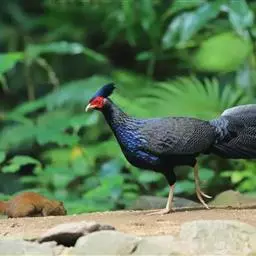 红腹角雉属于鸡形目雉科,雄鸟体羽及两翅主要为深栗红色,满布具黑缘的灰色眼状斑,下体灰斑大而色浅。雌…