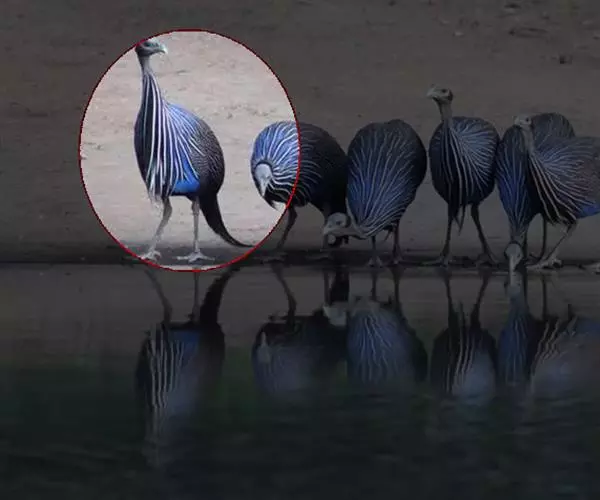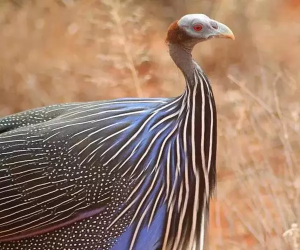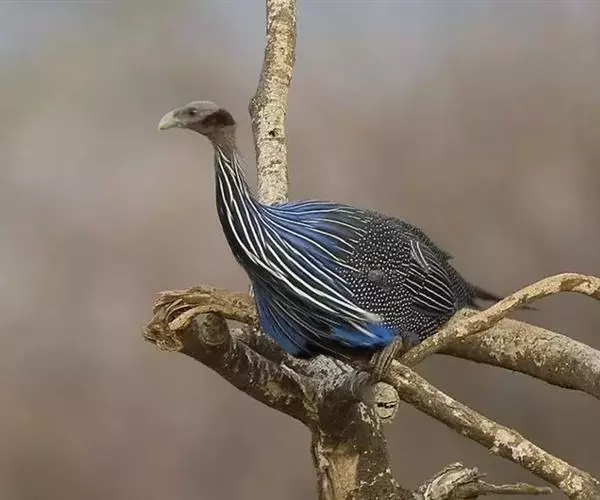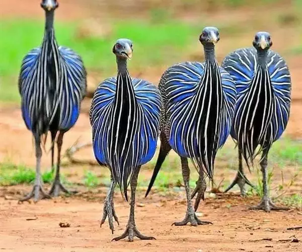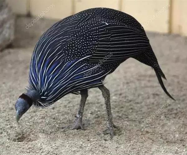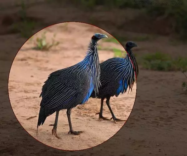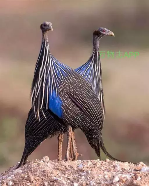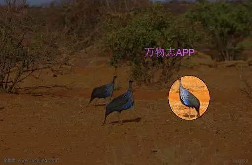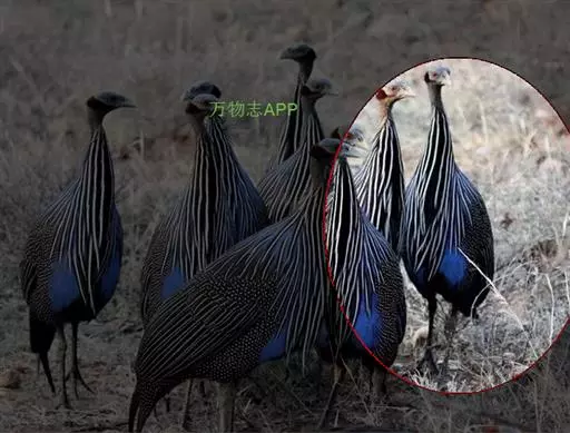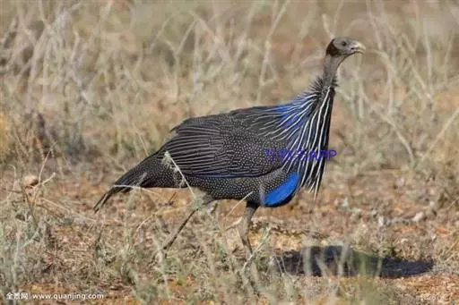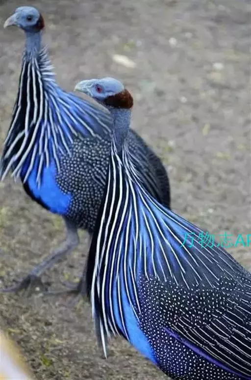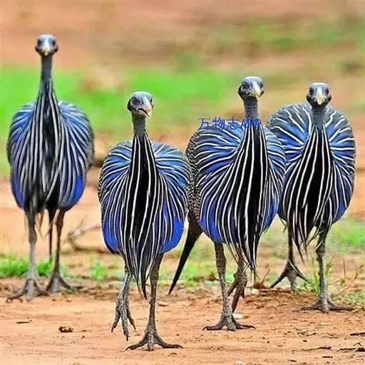 鹫珠鸡(学名:Acryllium vulturinum):是珠鸡科中体形最大的一种,因头颈部像兀鹫而得名。雌雄羽色相似,为黑色基底上遍布白色点斑,如同珍珠。以各种植物的种子和小型动物为食。走禽。体结实,喙短,呈圆锥形,适于啄食植物种子;脚强健,具锐爪,善于行走和掘地寻食;雄鸟具大的肉冠和美丽的羽毛;跗蹠后缘具距。