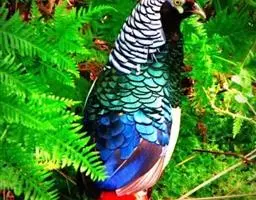 黑长尾雉大型鸡类,体长53~88厘米。雄较雌大。雄鸟通体紫蓝色,脸鲜红色,翅上有一条显著的白色翅斑…
