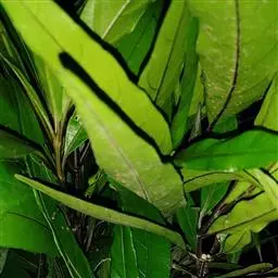叶具柄,卵形、距圆形至卵状披针形,长9-15厘米,宽4.5-8.5厘米,顶端渐尖,基部阔楔形,下延,边全缘或微波状,侧脉每边6条,上面深绿色,背面淡绿色,侧脉在背面凸起,明显。