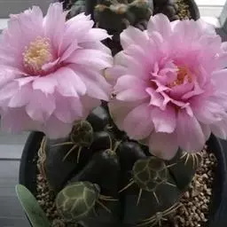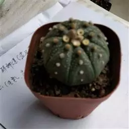 绯花玉 Speg.)是仙人掌科、裸萼球属多肉植物,植株呈扁球形,表皮墨绿色,刺针状,…
