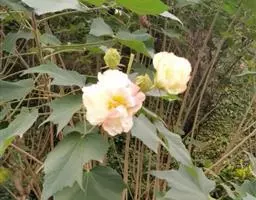 苘麻锦葵科苘麻属一年生亚灌木草本植物。茎秆较高,上面有柔毛;叶子较大且有纹路,浅绿色,边缘不平整,…