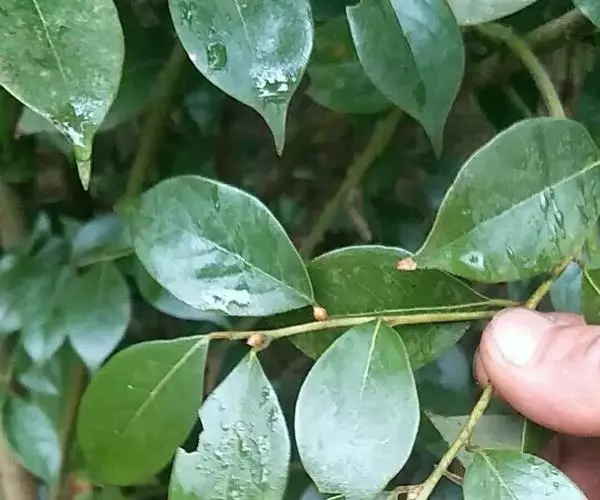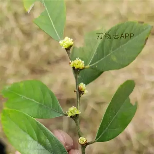 具纵条纹,绿色,干时棕褐色,或疏或密被黄白色短柔毛,基部有密集芽鳞痕,一年生枝条粗壮,无毛,皮层不规则纵裂。顶芽卵形,长约5毫米。叶互生,通常披针形、卵形或椭圆形,长(3)4-9(12.5),宽(1)1.5-3(4.5)厘米,先端渐尖、急尖、骤尖或有时近尾尖,基部宽楔形或近圆形;薄革质至厚革质;上面绿色,无毛,下面灰绿或浅黄色,被黄褐色柔毛,后渐脱落成疏柔毛或无毛,边缘内卷;羽状脉,侧脉每边5-7条,弧曲,与中脉上面凹陷,下面突起,被黄褐色微柔毛或近无毛;叶柄长5-8毫米,被黄褐色微柔毛或近无毛。伞形花序具5-8朵花,单生或二个同生于叶腋,总梗极短;总苞片4,早落。雄花黄色,直径达4毫米,花梗长2-2.5毫米,略被金黄色微柔毛;花被片6,卵形,近等大,长约3毫米,宽1.5毫米,先端圆形,外面略被金黄色微柔毛或近无毛;雄蕊9,长2.5-3毫米,花丝略被微柔毛或无毛,与花药等长,第三轮基部有2具角突宽肾形腺体;退化雌蕊的子房卵形,长约1毫米,无毛,花柱、柱头不分,成一短凸尖。雌花黄色或黄白色,花梗长2-2.5毫米;花被片6,卵形,长2毫米,外面被微柔毛;退化雄蕊9,条形,长1.5毫米,第三轮有2个腺体;子房椭圆形,长1.5毫米,无毛,花柱长2毫米,柱头盾形,具乳突。果卵形,长约1厘米,宽7-8毫米,也有时略小而近球形,无毛,成熟时红色;果梗长4-7毫米,被黄褐色微柔毛。花期3-4月,果期9-10月。