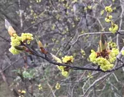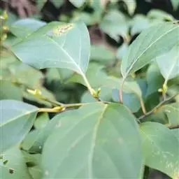 常绿灌木或小乔木,高(1-5)3-4米,胸径25厘米;树皮淡褐色。当年生枝条纤细,平滑, 植物-香叶树(图2)