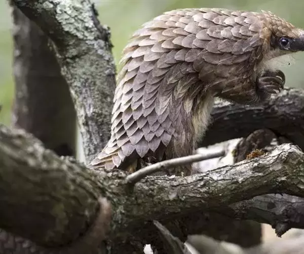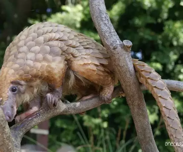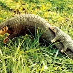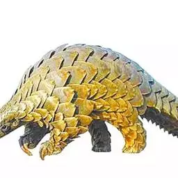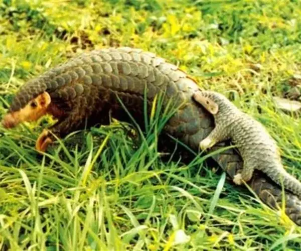 穿山甲(学名:Manis pentadactyla):头体长42-92厘米,尾长28-35厘米,体重2-7千克;鳞片与体轴平行,共15-18列。尾上另有纵向鳞片9-10 片。鳞片棕褐色,老年兽的鳞片边缘橙褐或灰褐色,幼兽尚未角化的鳞片呈黄色。吻细长。脑颅大,呈圆锥形。
