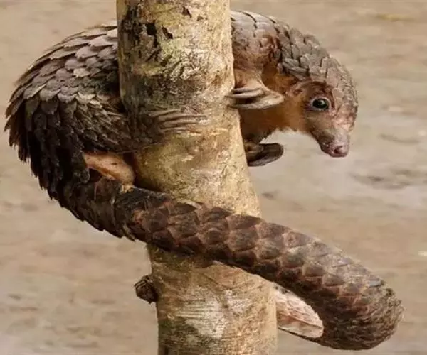 穿山甲头体长42-92厘米,尾长28-35厘米,体重2-7千克;吻细长。脑颅大,呈圆锥形。具有一小眼睛,形体狭长,全身有鳞甲,四肢粗短,尾扁平而长,背面略隆起。不同个体体重和身长差异极大。头呈圆锥状,眼小,吻尖。舌长,无齿。耳不发达。足具5趾,并有强爪;前足爪长,尤以中间第3爪特长,后足爪较短小。全身鳞甲如瓦状。鳞片与体轴平行,共15-18列自额顶部至背、四肢外侧、尾背腹面都有。尾上另有纵向鳞片910 片。鳞甲从背脊中央向两侧排列,呈纵列状。鳞片呈棕色,腹部的鳞片略软,呈灰白色,老年兽的鳞片边缘橙褐或灰褐色,幼兽尚未角化的鳞片呈黄色。鳞有三种形状