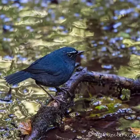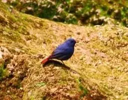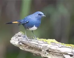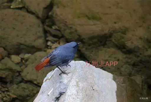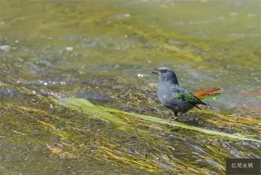 红尾水鸲(学名:Rhyacornis fuliginosus)是鸫科水鸲属的小型鸟类,雄鸟通体大都暗灰蓝色;翅黑褐色;尾羽和尾的上、下覆羽均栗红色。雌鸟上体灰褐色;翅褐色,具两道白色点状斑;尾羽白色、端部及羽缘褐色;尾的上、下覆羽纯白;下体灰色,杂以不规则的白色细斑。