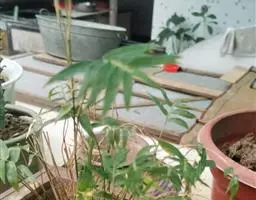 凤尾竹 Raeusch. ex Schult. ’Fernleaf’ R. A. Young)是禾本科,簕竹属孝顺竹的变种。植株较高大,杆高可达6米,竿中空,小枝稍下弯,下部挺直,绿色;竿壁稍薄;节处稍隆起,无毛;叶鞘无毛,纵肋稍隆起,背部具脊;叶耳肾形,边缘具波曲状细长繸毛;叶舌圆拱形,叶片线形,上表面无毛,下表面粉绿而密被短柔毛,小穗含小花,中间小花为两性;外稃两侧稍不对称,长圆状披针形,先端急尖;内稃线形,脊上被短纤毛,花药紫色,子房卵球形,羽毛状。成熟颖果未见。原产中国,华东、华南、西南以至台湾、香港均有栽培。凤尾竹喜温暖、湿润和阳光充足的环境,耐寒。宜土层深厚、肥沃、疏松的微酸性壤土。该种观赏价值较高,宜作庭院丛栽,也可作盆景植物。全草或根入药,味淡、微苦,性寒,有清热利湿、凉血止血、消肿解毒功效,可治痢疾、泄泻等多种病症。凤尾