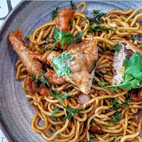 沙茶面是福建省闽南地区、台湾地区和东南亚地区的一道特色美食,中国的沙茶面分闽南沙茶,广东潮汕沙茶等风味。其妙处在在于沙茶酱的制作,而沙茶酱用以制作汤头。沙茶酱主料有虾干,鱼干,葱头,蒜头,老姜等十几种食材构成,经油炸香酥再研磨细,制成沙茶酱待用。