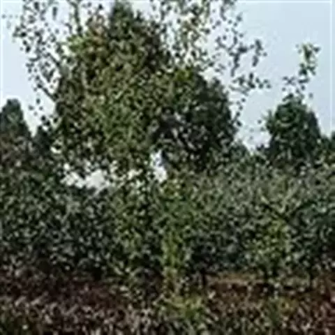 根据初步调查材料表明,加杨可与刺槐、紫穗槐混交。加杨与刺槐混交,是一种较好的乔木混交林。这种混交林在土壤瘠薄、杂草丛生的情况下,可以充分发挥刺槐的有利特性,对于提早幼林郁闭,消灭林地杂草,提高土壤肥力,加速加杨生长具有重要作用。如河南省滑县,加杨与刺槐的混交林,比加杨纯林生长好,3年生的混交林树高生长比纯林大63%,胸径大39%。又如河南民权农林场加杨与刺槐的带状混交林生长也好。11年生的带状混交林内,距刺槐带3米远的加杨平均树高10米,胸径13厘米;距6米远的平均树高8.5米,胸径10厘米;距9米远的平均树高7米,胸径7.7厘米;距12米远的平均树高5.5米,胸径6.6厘米。由此可见,加杨与刺槐带状混交时,一般以4行一带为宜。这种混交林便于抚育和更新。在茅草丛生的地方与刺槐混交,对加杨生长有明显的促进作用。