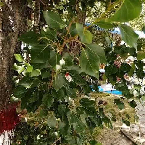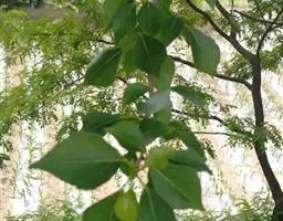 黑杨,为乔木,高30米;树冠阔椭圆形。树皮暗灰色,老时沟裂。小枝圆形,淡黄色,无毛。芽长卵形,富粘质,…