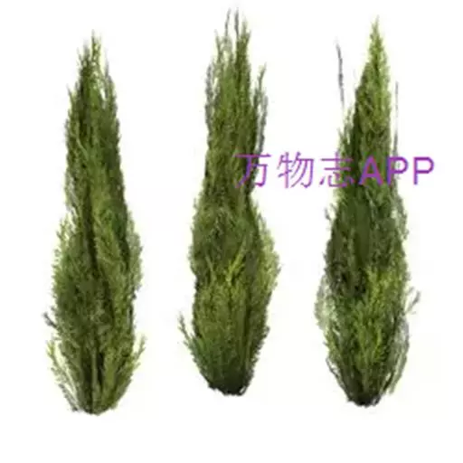 塔桧:树冠塔状圆柱形;枝不平展,多贴主干斜生,小枝密集,2型叶,以钻形叶为多。亦名圆柱桧。
