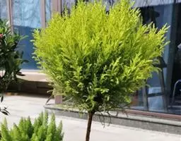 球桧:为丛生圆球形或扁球形灌木,叶多为鳞叶,小枝密生。
