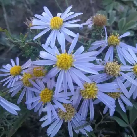 头状花序多数,在茎端密集成复伞房状,干时宽6-7毫米;花序梗长5-16毫米,具数枚线形小苞片;总苞筒状,长9-12毫米,宽5-7毫米,基部有3-4小苞片;总苞片1层,5,长圆形,顶端钝,边缘膜质,外面无毛。小花8-10,花冠淡粉白色,长10毫米,管部窄,长3.5-4毫米,檐部窄钟状,5裂;花药变紫色,基部短箭形;花柱分枝伸长,扁,顶端钝,被笔状微毛。瘦果圆柱形,长5-6毫米,无毛,具肋;冠毛污白色或变红色,糙毛状,长8-10毫米。花期6-7月,果期8-10月。