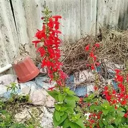 一串红,又称爆仗红、象牙红,为唇形科鼠尾草属植物。