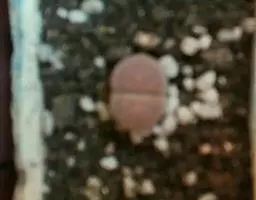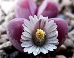 荒玉为番杏科生石花属,原产南非。株体呈白粉色,表面布满凹凸纹路,凹陷处为红褐色,每年秋季开黄花。