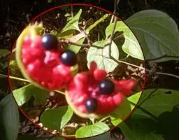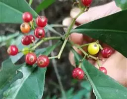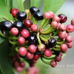 聚伞花序短小,2至数个簇生于叶腋或在老枝的叶痕上,有极短的总花梗;苞片合生,二型,通常2枚阔卵形,顶端截平,2枚线形,有时呈叶形。花未见。浆果大,阔椭圆形,长19-21毫米,直径15-17毫米,成熟时鲜红色,顶端冠?钥?4-7毫米、凸起的花盘;种子长圆形,长15毫米,直径约10毫米,平滑。花期1-5月。