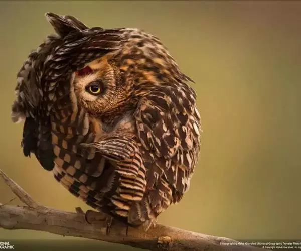耳短小而不外露,黑褐色,具棕色羽缘。面盘显著,眼周黑色,眼先及内侧眉斑白色,面盘余部棕黄色而杂以黑色羽干纹。皱领白色,羽端微具细的黑褐色斑点。上体包括翅和尾表面大都棕黄色,满缀以宽阔的黑褐色羽干纹;肩及三级飞羽纵纹较粗,纹的两侧更生出枝纹形成横斑,外翈还缀有白斑;翅上小覆羽黑褐色,并缀以棕红色斑点;中覆羽及大覆羽亦黑褐色,外翈有大型白色眼状斑;初级覆羽几纯黑褐色,有时缀以棕斑;外侧初级飞羽棕色,羽端微具褐色斑点,并杂有黑褐色横斑;最外侧3枚初级飞羽先端全为黑褐色,次级飞羽外翈呈黑褐色与棕黄色横斑相杂状,内翈几纯白色,仅在近羽端处具黑褐色细斑;腰和尾上覆羽几纯棕黄色,无羽干纹;尾羽棕黄色而具黑褐色横斑和棕白色端斑。下体棕白色,颏白色。胸部较多棕色,并满布以黑褐色纵纹,下腹中央和尾下覆羽及覆腿羽无斑杂。