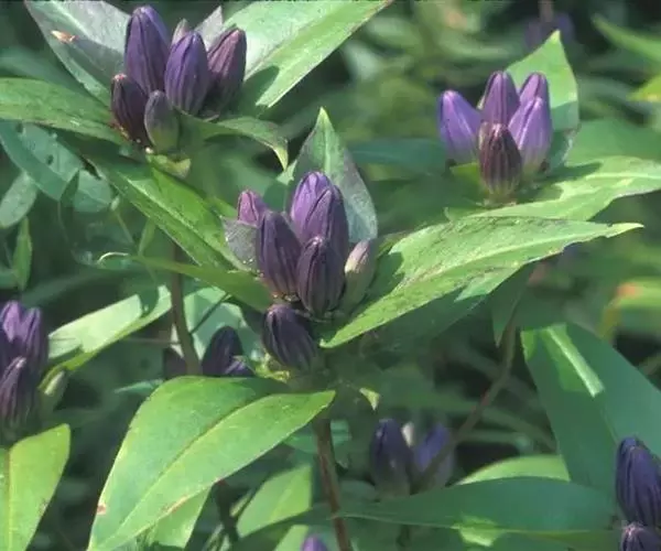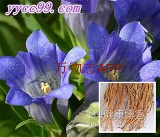 龙胆的根及根茎入药。其味苦、性寒。归肝、胆经。清热燥湿、泻肝胆实火等作用。主治高血压、头晕耳鸣、胆囊炎、急性传染性肝炎、阴部湿痒、湿热黄疸、疮疖痈肿、口苦和惊风等症,为保肝利胆的良药。