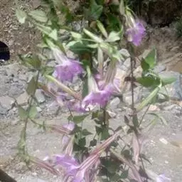花多数,簇生枝顶和叶腋;无花梗;每朵花下具2个苞片,苞片披针形或线状披针形,与花萼近等长,长2-2.5厘米;花萼筒倒锥状筒形或宽筒形,长10-12毫米,裂片常外反或开展,不整齐,线形或线状披针形,长8-10毫米,先端急尖,边缘粗糙,中脉在背面突起,弯缺截形;花冠蓝紫色,有时喉部具多数黄绿色斑点,筒状钟形,长4-5厘米,裂片卵形或卵圆形,长7-9毫米,先端有尾尖,全缘,褶偏斜,狭三角形,长3-4毫米,先端急尖或2浅裂;雄蕊着生冠筒中部,整齐,花丝钻形,长9-12毫米,花药狭矩圆形,长3.5-4.5毫米;子房狭椭圆形或披针形,长1.2-1.4厘米,两端渐狭或基部钝,柄粗,长0.9-1.1厘米,花柱短连柱头长3-4毫米,柱头2裂,裂片矩圆形。蒴果内藏,宽椭圆形,长2-2.5厘米,两端钝,柄长至1.5厘米;种子褐色,有光泽,线形或纺锤形,长1.8-2.5毫米,表面具增粗的网纹,两端具宽翅。花果期5-11月。