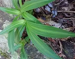 多年生草本,高30-60厘米。根茎平卧或直立,短缩或长达5厘米,具多数粗壮、略肉质的须根。花枝单生,直立,黄绿色或紫红色,中空,近圆形,具条棱,棱上具乳突,稀光滑。枝下部叶膜质,淡紫红色,鳞片形,长4-6毫米,先端分离,中部以下连合成筒状抱茎;中、上部叶近革质,无柄,卵形或卵状披针形至线状披针形,长2-7厘米,宽2-3厘米,有时宽仅约0.4厘米,愈向茎上部叶愈小,先端急尖,基部心形或圆形,边缘微外卷,粗糙,上面密生极细乳突,下面光滑,叶脉3-5条,在上面不明显,在下面突起,粗糙。