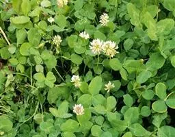 白车轴草,豆科车轴草属的多年生草本植物,茎贴地匍匐;叶柄直立,小叶心形,边缘具细齿,叶脉明显,…
