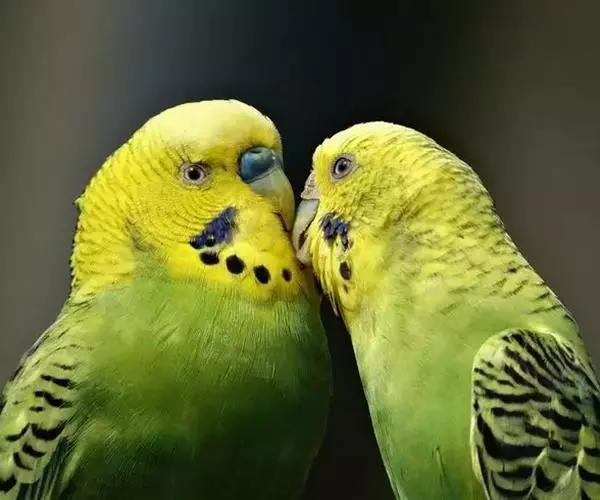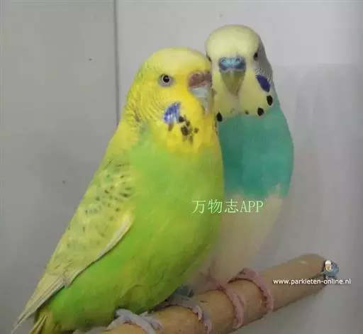 2.淡色型虎皮鹦鹉可分为上体黄色,腹部绿色和上体白色,腹部蓝色两个品系,翅上均有黑色斑点(也有一些没有)。