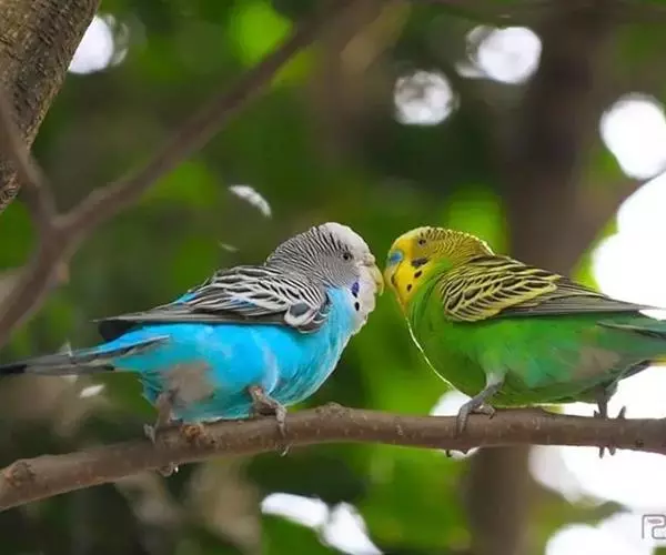 3.玉头型虎皮鹦鹉一种头部白色,其他部位体色均为淡蓝色;另一种头部为黄色,其它部位体羽均为绿色两个品系。