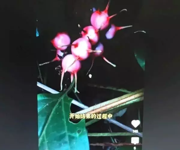 雌花1-3,生花序轴基部,连柄长近4毫米,萼片覆瓦状排列,卵状披针形或长圆状披针形,长2-3毫米,无毛,花柱受粉后伸出花外甚长,上端旋卷。果熟时黄色或红色,球形,和宿存花柱各长1厘米。花期2-5月,果期9-10月。