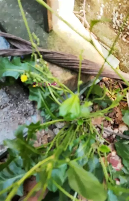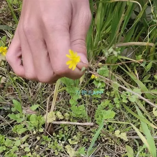 一年或二年细弱草本,高5-30cm。基生叶丛生,有柄;叶片长4-18cm,宽1-3cm,先端圆钝或短尖,顶端裂片较大,卵圆形,边缘羽状分裂,两侧裂片3-4对,短椭圆形;茎生叶1-2,有短柄或近无柄。头状花序成稀疏的伞房状圆锥花丛,有细梗,果时常下垂;总苞圆柱状钟形,外层总苞片小,卵状披针形,长约1mm,内层总苞片5-6,长椭圆状披针形,长约4.5mm;花托平坦,无毛;全部为舌状花,黄色。瘦果椭圆状披针形,扁平,长4-5mm,等于或长于总苞片,成熟后黄棕色,无毛,背腹面各有5-7肋,先端两侧各有1钩刺,无冠毛。花果期4-5月。