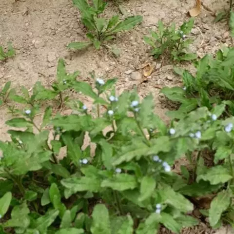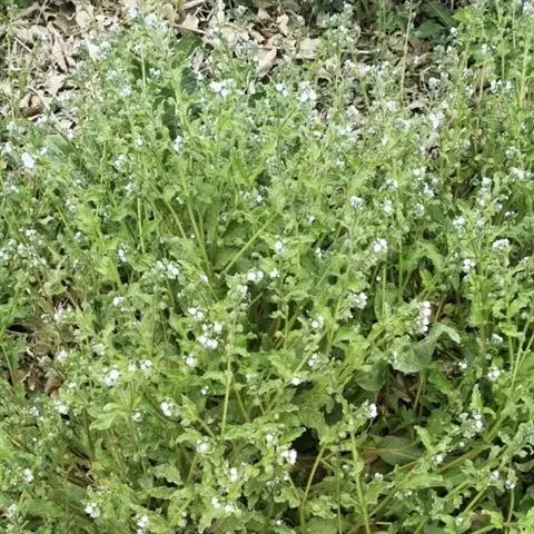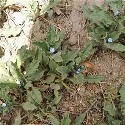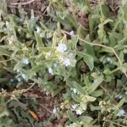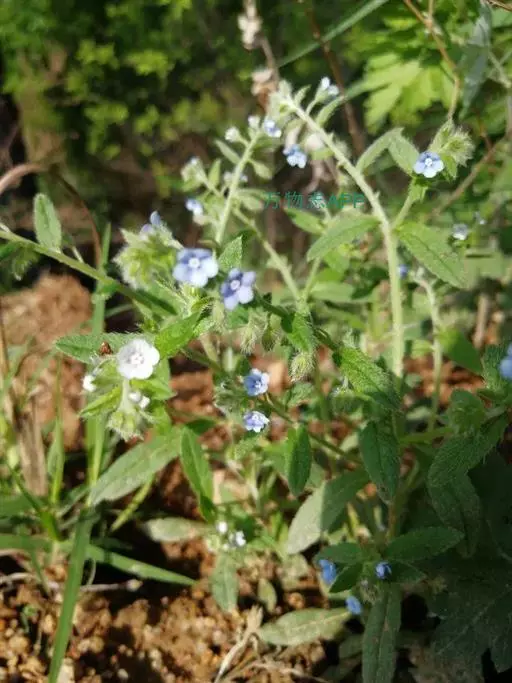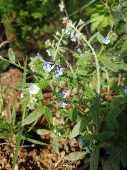 多苞斑种草为一年生或两年生草本。成株 茎直立或上升被开展的糙毛,有分枝。叶卵状披针形或狭椭圆形。镰状聚伞花序狭长;苞片狭卵形,与花梗近等长或稍长;花萼5裂近基部,裂片线装披针形,外被糙毛;花冠淡蓝色,喉部具5个鳞片状附属物,花冠5裂,裂片卵圆形;雄蕊5,内藏;子房4裂,花柱内藏。子实小坚果4,肾形或卵状椭圆形,密生小疣状突起,腹面具纵向椭圆状的凹陷。秋季或春季萌发,花期5-7月,果期6-8月。种子繁殖。