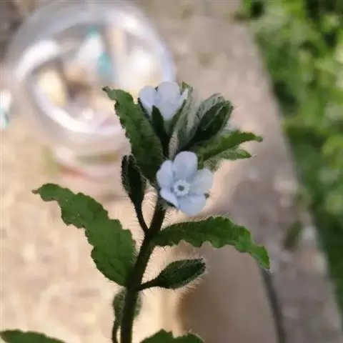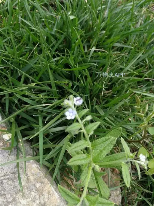 花序生茎顶及腋生枝条顶端,长10-20厘米,花与苞片依次排列,而各偏于一侧;苞片长圆形或卵状披针形,长0.5-1.5厘米,宽0.3-0.5毫米,被硬毛及短伏毛;花梗长2-3毫米,果期不增长或稍增长,下垂;花萼长2.5-3毫米,外面密生硬毛,裂片披针形,裂至基部;花冠蓝色至淡蓝色,长3-4毫米,檐部直径约5毫米,裂片圆形,喉部附属物梯形,高约0.8毫米,先端微凹;花药长圆形,长与附属物略等,花丝极短,着生花冠筒基部以上1毫米处;花柱圆柱形,极短,约为花萼1/3,柱头头状。